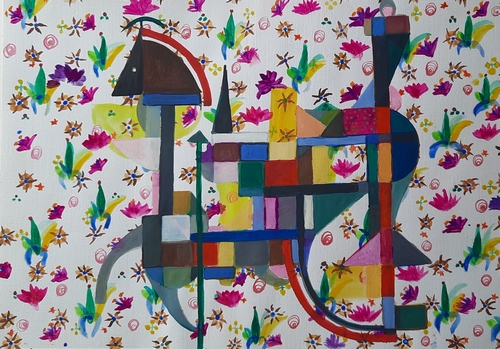 Gouache und Acrylfarbe auf Papier: hxb: 36x42
